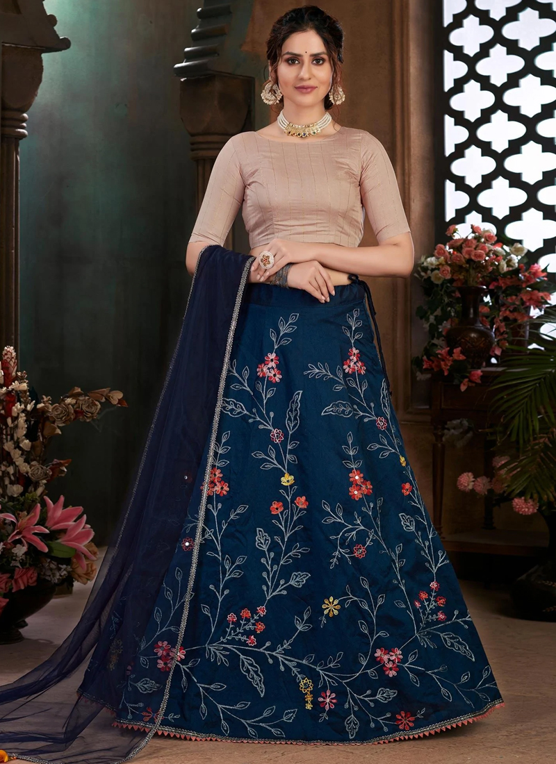 The lehenga blouse's outstanding beauty comes from its half sleeves and v-neck, which enable it to be worn with any other saree or other lehengas.
