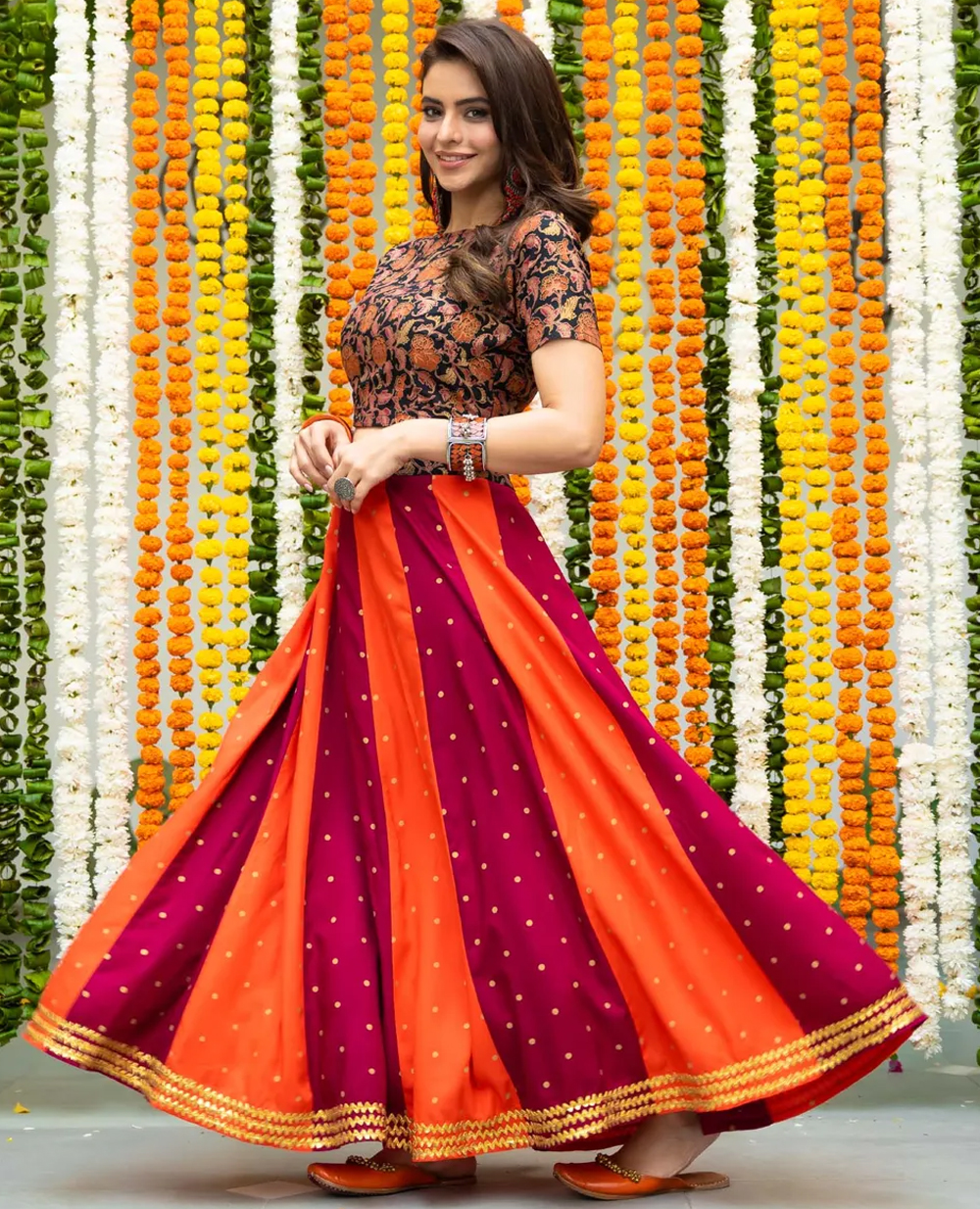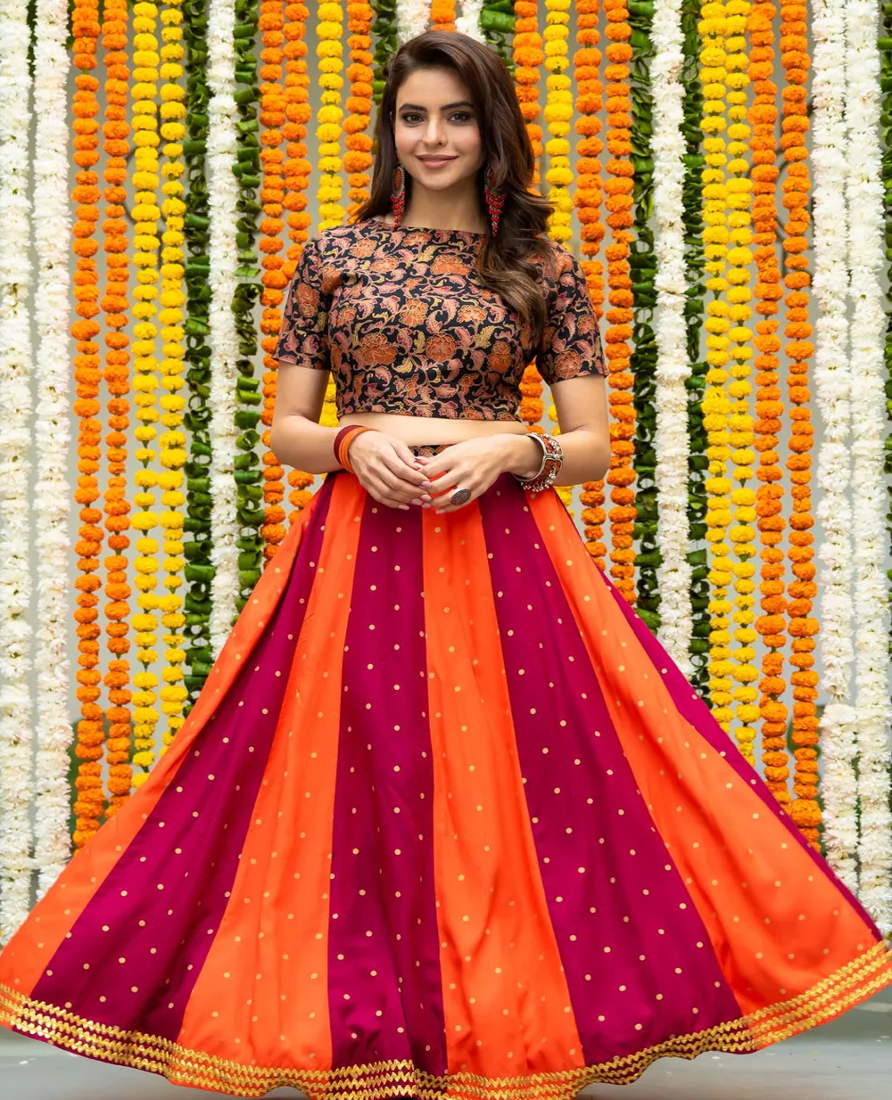 The color scheme of this Indian lehenga, one of the most popular ones among Indians, is what lends it its liveliness.